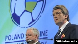 «Я хочу ще раз запевнити Вас: Євро-2012 пройде в Україні і Польщі, і Україна виконає всі свої зобов’язання, і в частині стадіонів, і в частині аеропортів», – заявляв він.