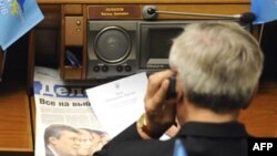 Фракція БЮТ відучора блокує трибуну й президію парламенту. У такий спосіб бютівці відреагували на внесення до порядку денного законопроекту про зміни до закону про вибори народних депутатів.