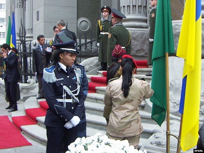 Муаммар Каддафі за весь час прес-конференції лише сказав, що підтверджує слова українського Президента. Він подякував Вікторові Ющенку і українському народові за можливість перебувати в Україні. На запитання журналістів Каддафі не відповідав.