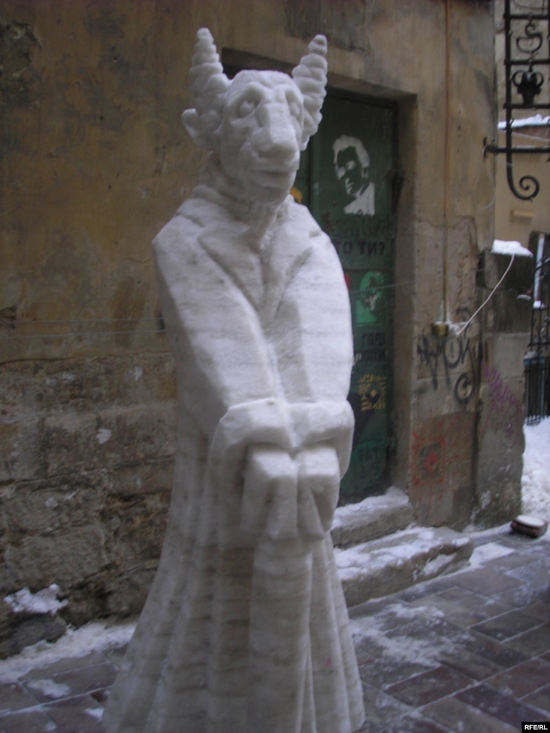 А ось львів’янин Орест Дзиндра, киянин Петро Романюк і вінничанин Сергій Кляпетура з нагоди Різдва у Львові витесали три снігові скульптури – Волхва, Козу і Смерть, які є неодмінними героями вертепу. Львівський скульптор Мирослав Дедишин подарував крижаний образ янгола, який у кризі прозорий і легкий, немов ось-ось і сяде на плече… Митці працювали протягом тижня, і тепер їхні творіння тішитимуть людей, допоки не потануть.