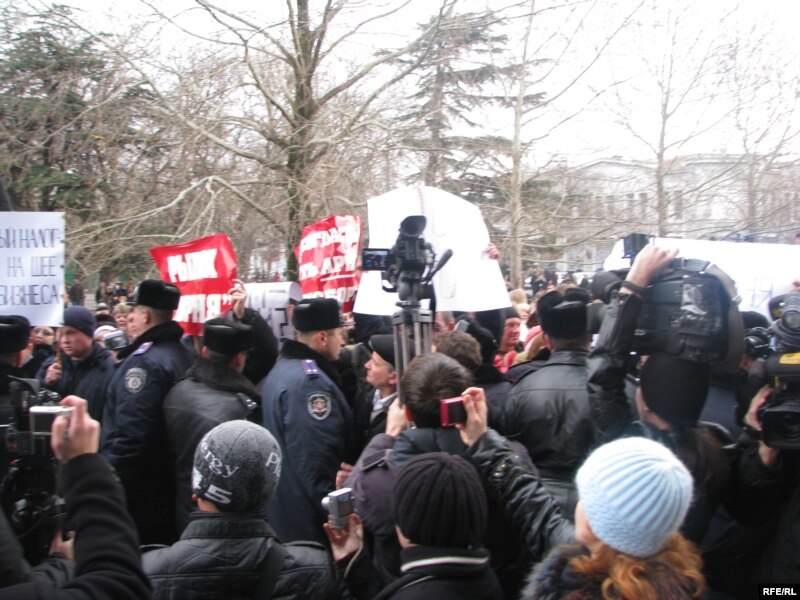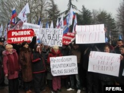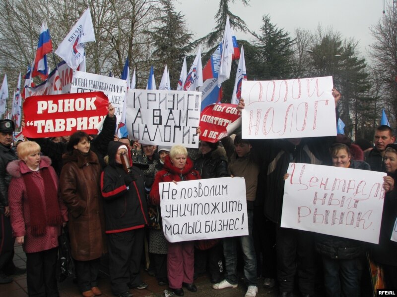 Учасники цієї акції протестували проти запровадження високих ставок місцевих ринкових зборів, встановлених кримською владою. Вони назвали «зашморгом на шиї малого бізнесу» дії місцевої влади в умовах економічної кризи.