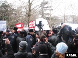 А на мітингу, організованому представниками проросійської парламентської більшості, відзначалося, що створення автономної республіки «захистило кримчан від українізації і наступу бандерівщини» і тепер слід захистити права Кримської автономії. Присутні тримали в руках державні прапори Росії, Андріївський прапор і партійні знамена, а також транспарант з гаслом «Захистимо Крим від свавілля українських чиновників!». Вони також скандували: «Севастополь! Крим! Росія!» та «Україна, Росія, Білорусь – єдність!». Більшість учасників цієї акції виявилися працівниками бюджетної сфери, яких привезли до Сімферополя з регіонів автономії.