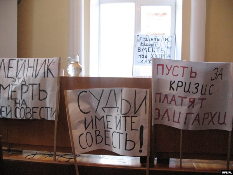 Херсон – Невиплата зарплат спонукає херсонських робітників до крайніх заходів. У понеділок працівники Херсонського машинобудівного заводу упродовж дня займали будівлю місцевої обласної державної адміністрації. Люди принесли із собою плакати: «Хай за кризу заплатять олігархи!», «Влада не діє!», «Прокуратура не працює», «Судді, майте совість!».