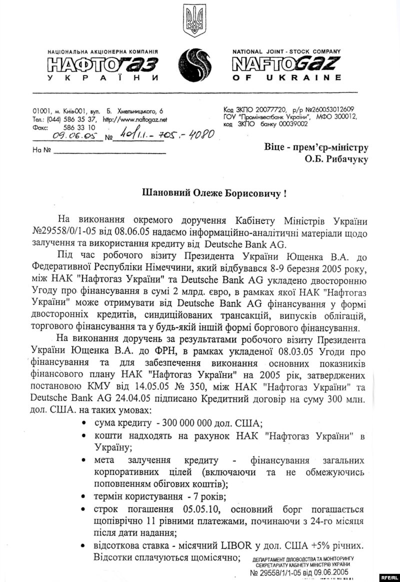 Як же все-таки українська державна компанія «проїла» закордонний кредит? Як свідчить доповідна записка «Нафтогазу» з архіву Сергія Фареника за 2005 рік, з 300 мільйонів доларів першого траншу німецького кредиту майже 9 мільйонів опинилися в Об’єднаних Арабських Еміратах.
