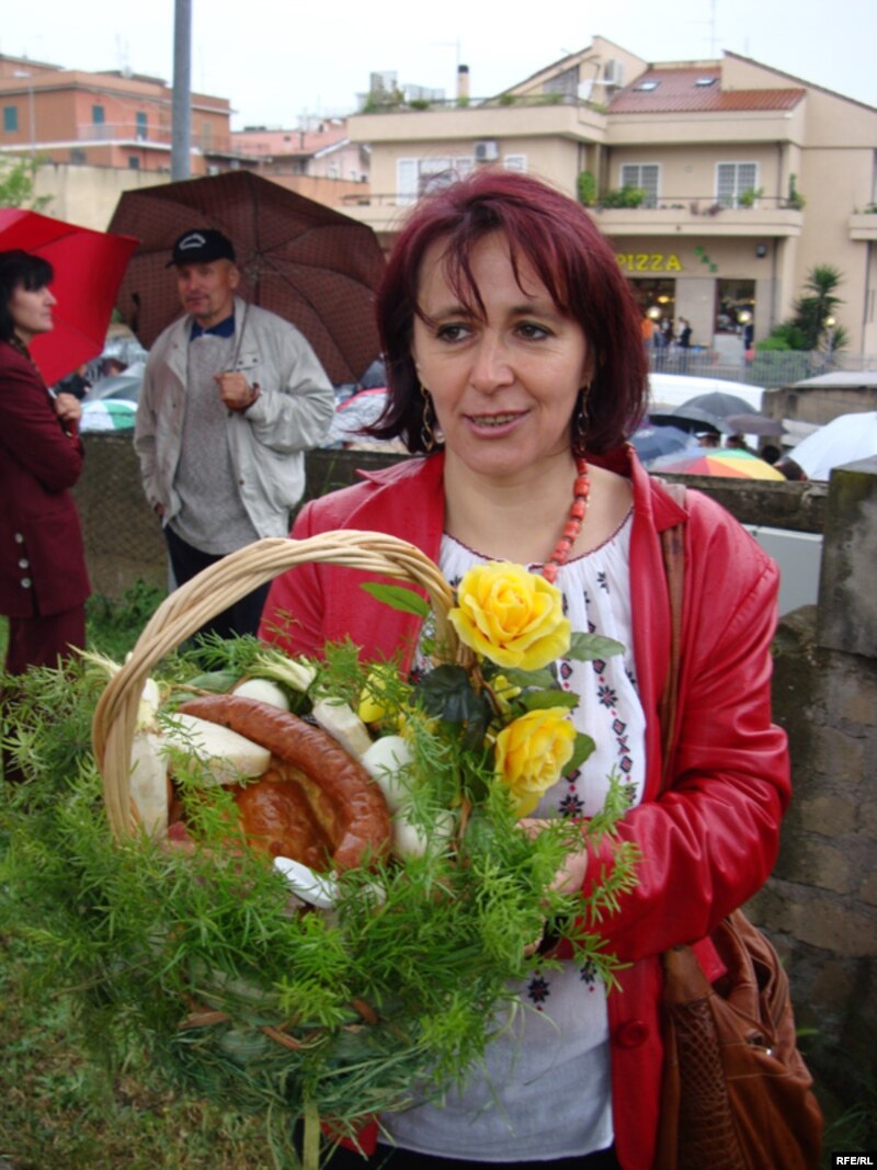 Незвична для квітневого Рима прохолодна дощова погода не завадила святкуванням і майже не зіпсувала настрою. Моя співрозмовниця, 67-літня жінка, сказала: «Я прийшла сьогодні до церкви з дуже піднесеним настроєм. Погода погана, але настрій гарний, тому що святимо паску, це по-нашому, по-українськи. Трохи сумно, що святкую не зі своїми дітьми в Україні».