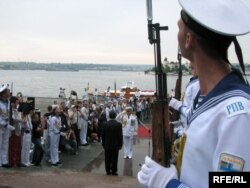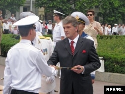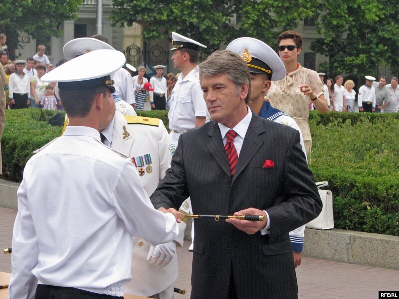 Разом із шефськими делегаціями регіонів України, посадовцями Міністерства оборони, командуванням ВМС України, керівництвом і громадськістю міста Президент поклав вінок до Вічного вогню на Меморіалі героїчним захисникам Севастополя, а потім – квіти до пам’ятника адміралові Павлу Нахімову, день народження якого саме випав на День флоту України. Потім голова держави взяв участь у церемонії вручення морських кортиків і дипломів лейтенантам-випускникам Севастопольського військово-морського інституту імені Нахімова.