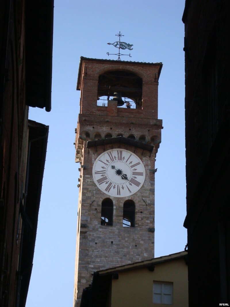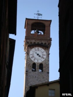 Над червоними дахами з черепиці височіють вежі і дзвіниці церков. Така класична панорама тосканського міста відкривається з висоти середньовічної Годинникової вежі. Про особливість споруди розповіла організатор екскурсій Серена Фабрі: «Це найвища вежа міста заввишки приблизно 47 метрів. Збудували її наприкінці XIV століття. На гору до оглядового майданчика ведуть 207 сходинок. Назва вежі пов’язана з тим, що на ній встановили перший у місті годинник».