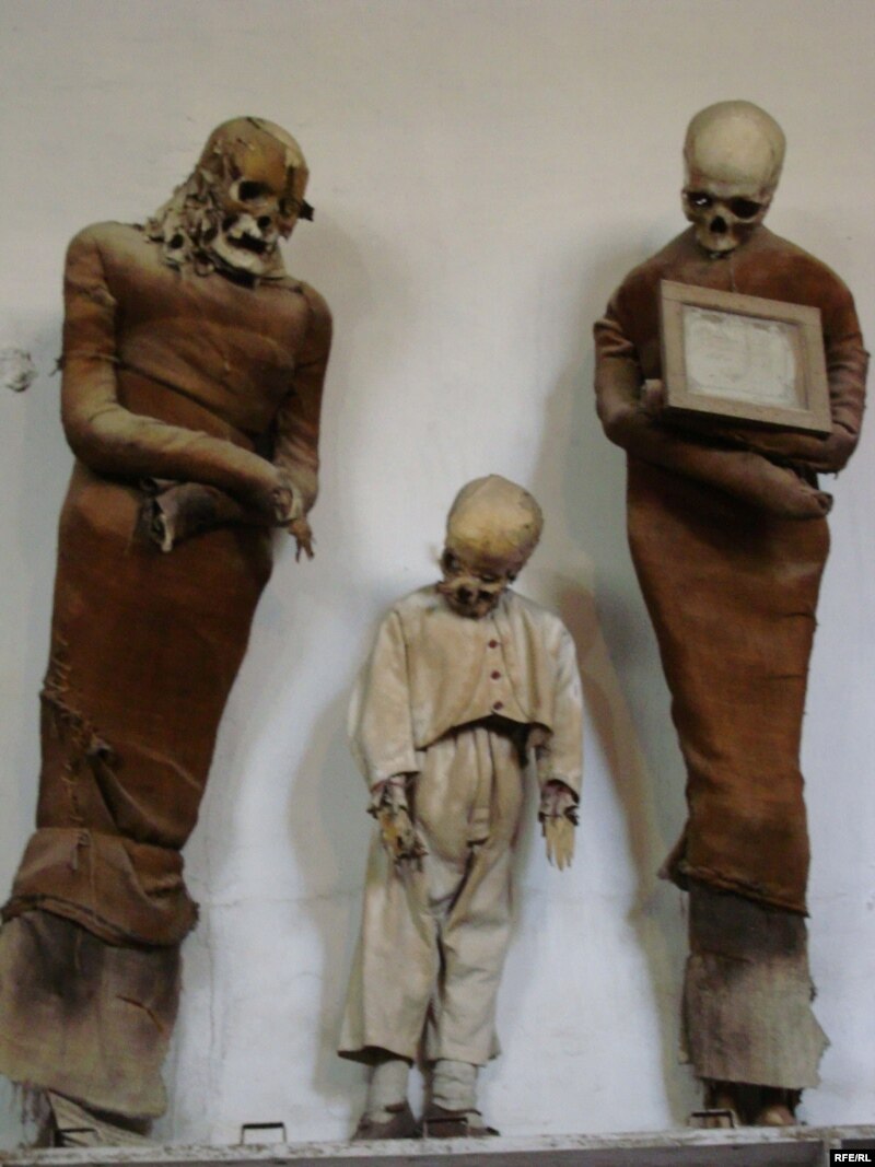 Унікальний музей смерті, де у відкритому вигляді покояться понад вісім тисяч муміфікованих людських тіл. У довгих коридорах праворуч і ліворуч знизу догори на тебе ніби дивляться, ніби кричать чи сміються людські скелети. Деякі лежать на полицях, як у шафі, решта висять уздовж стін, підвішені звичайним дротом.