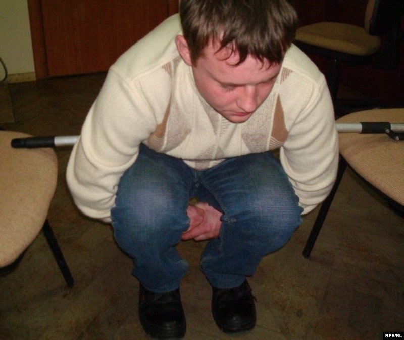 Такий різновид вибивання свідчень серед міліціонерів називається «папуга». Затриманий втратив чутливість рук.