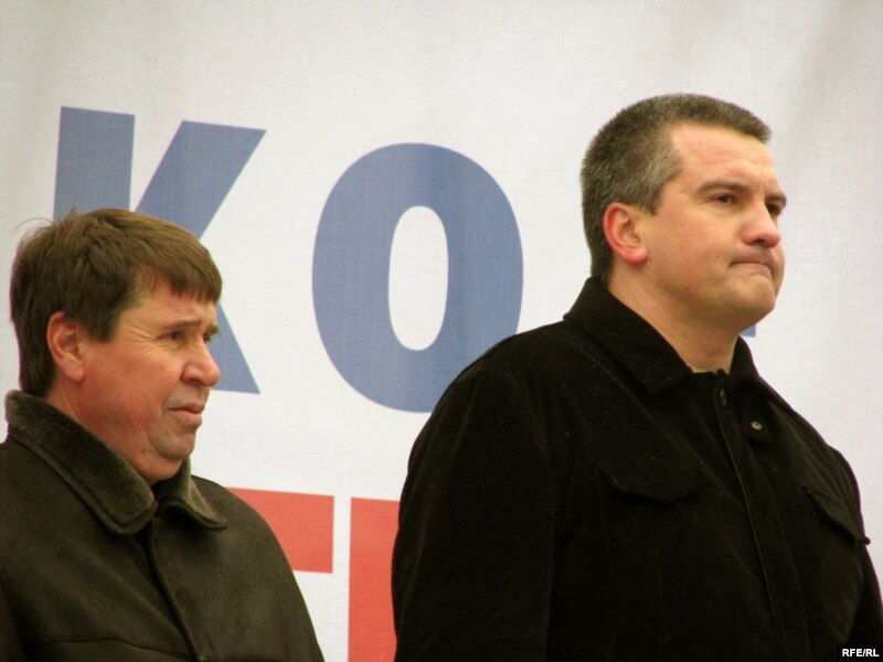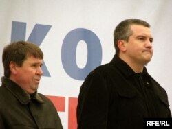 Співголови нової коаліції «Російська єдність» Сергій Цеков (л) і Сергій Аксьонов (п) на її мітингу, Крим, Сімферополь, 19 грудня 2009 року