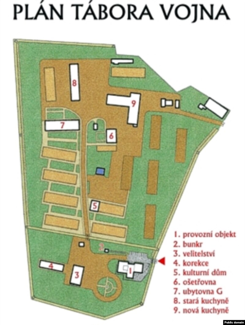 Вузькою стежкою попід ліс до підніжжя невисокої – всього 660 метрів – гори, яка називається «Война», і перед вами відкривається великий простір за високою огорожею з колючим дротом і воротами з написом «Працею до свободи». Це і є найсуворіший у комуністичній Чехословаччині табір примусової праці «Война».