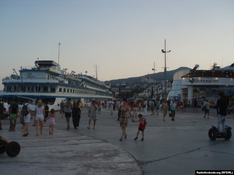 Ось підстаркуватий «масовик-затійник» у формі матроса Чорноморського флоту під пам’ятником вождеві світового пролетаріату розважає публіку старшого віку. Заводить «Вышел в степь донецкую парень молодой», каже на честь Президента Януковича. Народ привітання підхоплює танцем. Це, здається, єдине, що на набережній імені Леніна нагадує комуністичні часи. Далі з мегафонів і мікрофонів: екскурсія узбережжям – причал такий-то, теплохід відпливає за 10 хвилин, На оглядини Ластівчиного гнізда закликають з іншого. Втім все це чуєш одним вухом. Бо на інше пропонують кримські троянди, штучний сніг, фото на пам’ять. Пані й панянки заради тих фото вбираються в криноліни поверх шортів. Хоч у відпустці, хоч на 5 хвилин побуде фрейліною, посидить на троні, хай і бутафорському. Місцеві підприємці вгадують чи намагаються передбачати – пролетарські мрії.