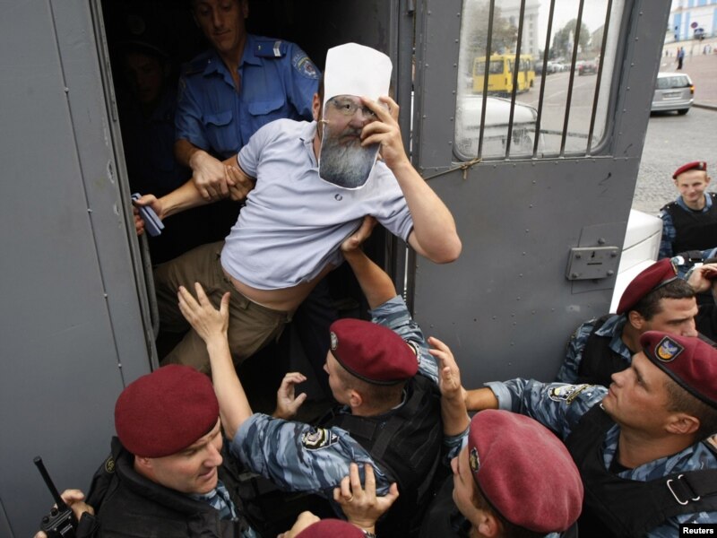 Не пустили на Софійський майдан і представників Конгресу українських націоналістів, УНА-УНСО та Української народної партії, а учасників всеукраїнського об’єднання «Свобода», які запланували театралізоване дійство проти патріаршого візиту, правоохоронці затримали.