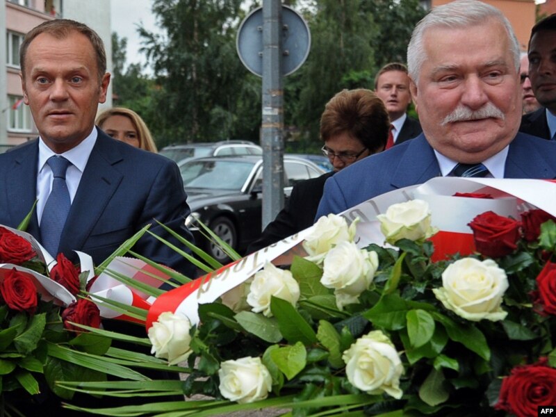 Колишній президент Польщі Лех Валенса і прем'єр-міністр Дональд Туск у Гданську, 29 серпня 2010 року