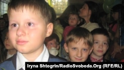 Ці голоси допомагають першим звукам гімну пробитися через російсько-українське багатоголосся шкільного свята.