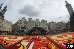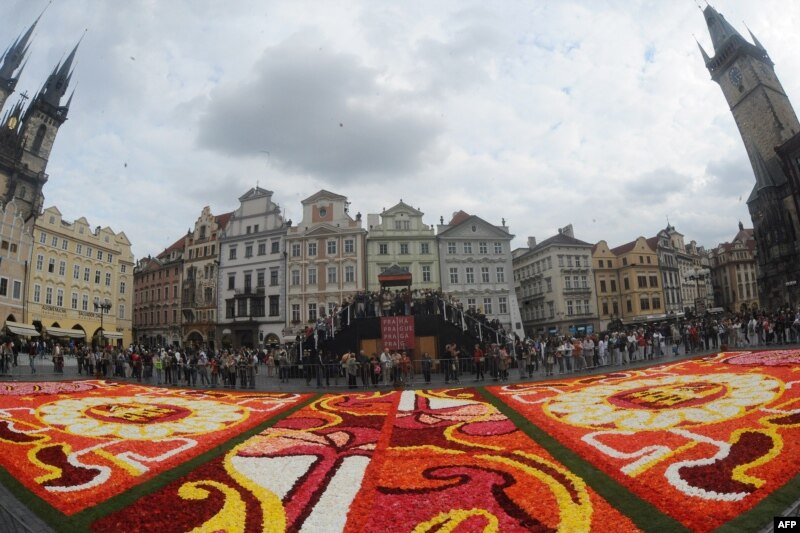 Ну, а Прагу можна сьогодні назвати найбільш заквітчаним містом Європи. Килим із 150 тисяч квіток бегонії «зіткали» на площі Старого міста в чеській столиці флористи із Брюсселя.