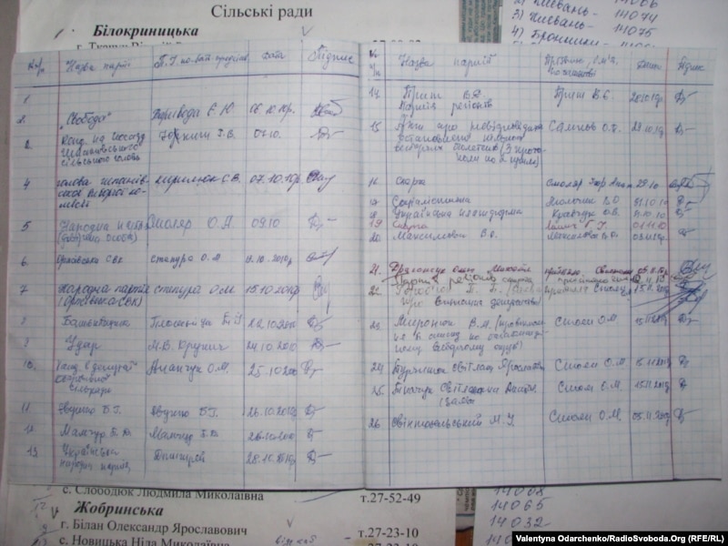 Координатор кампанії громадського спостереження «Опора» Андрій Токарський запевняє: досі члени комісії стверджували, що скарг від регіоналів не було, а запис у журналі реєстрації скарг та звернень від представника регіонів з’явився заднім числом і був вписаний поміж рядками.