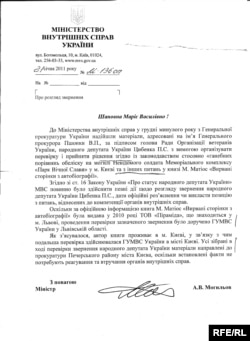 Лист датований 21 січня 2011 року за номером М-136ОП і підписаний Могильовим.