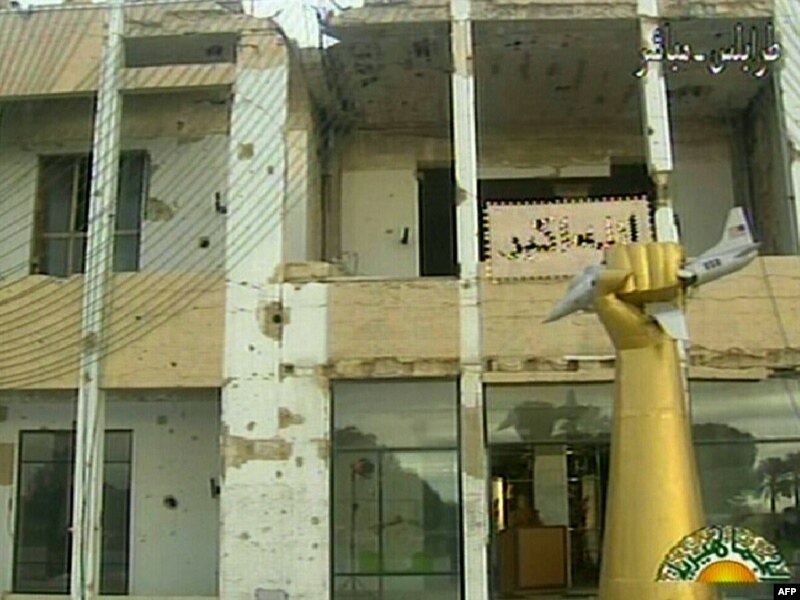 Каддафі виступав перед своєю колишньою резиденцією Баб аль-Азізія в Тріполі, яку дбайливо зберегли в руїнах після бомбардування США 1986 року