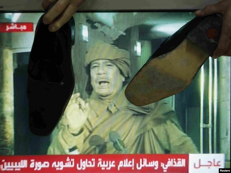 Під час трансляції промови Каддафі в Йорданії глядачі били його зображення черевиками на знак найвищої зневаги до лівійського лідера