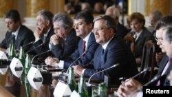 Звертаючись до запрошених президентів, Коморовський наголошував на тому, що центральноєвропейські держави відчули себе у повній безпеці щойно після того, як стали членами НАТО та ЄС.