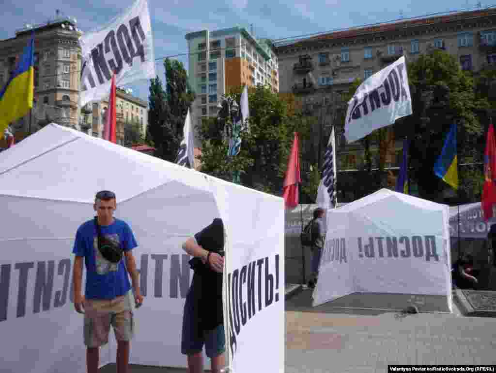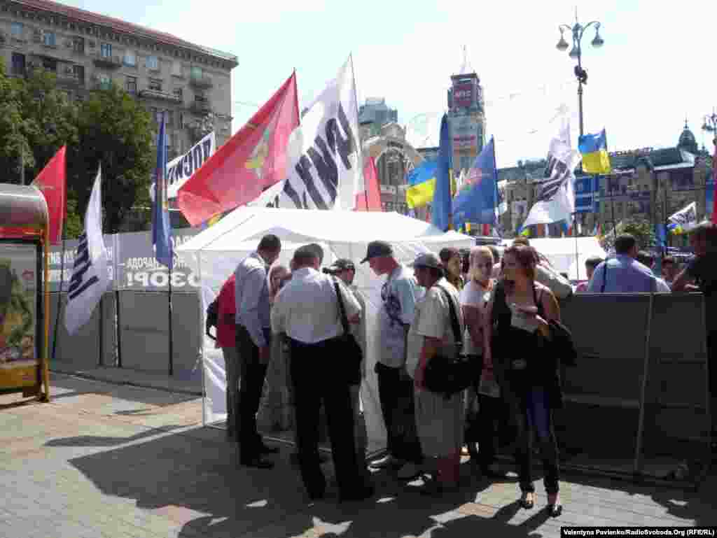 Близько 50 опонентів колишнього Прем’єр-міністра Юліцї ТИмошенко продовжують пікетувати на Хрещатику біля будівлі Печерського районного суду Києва.