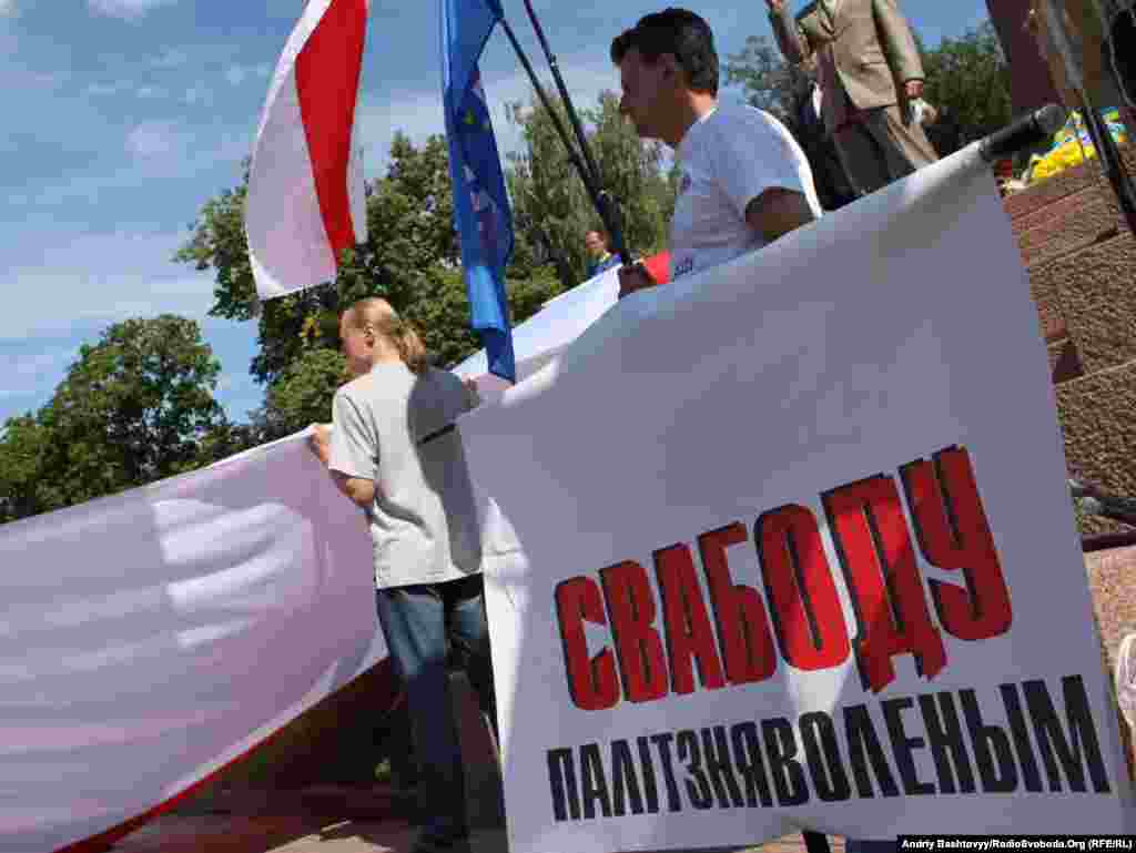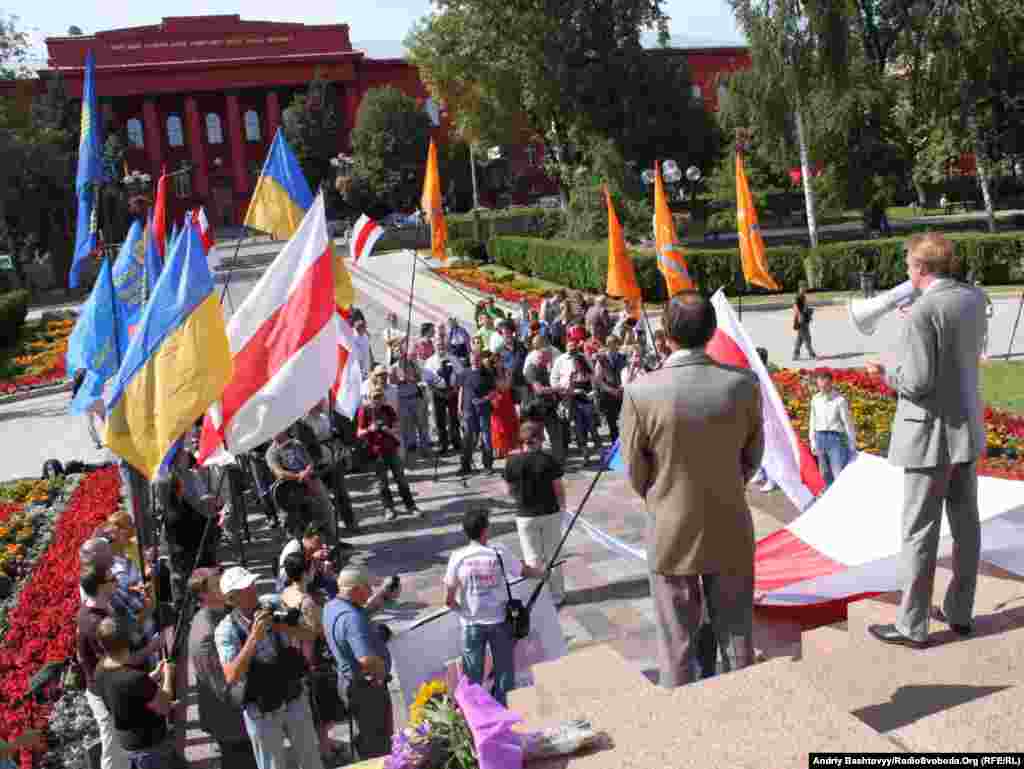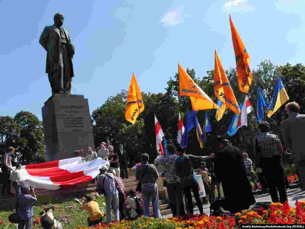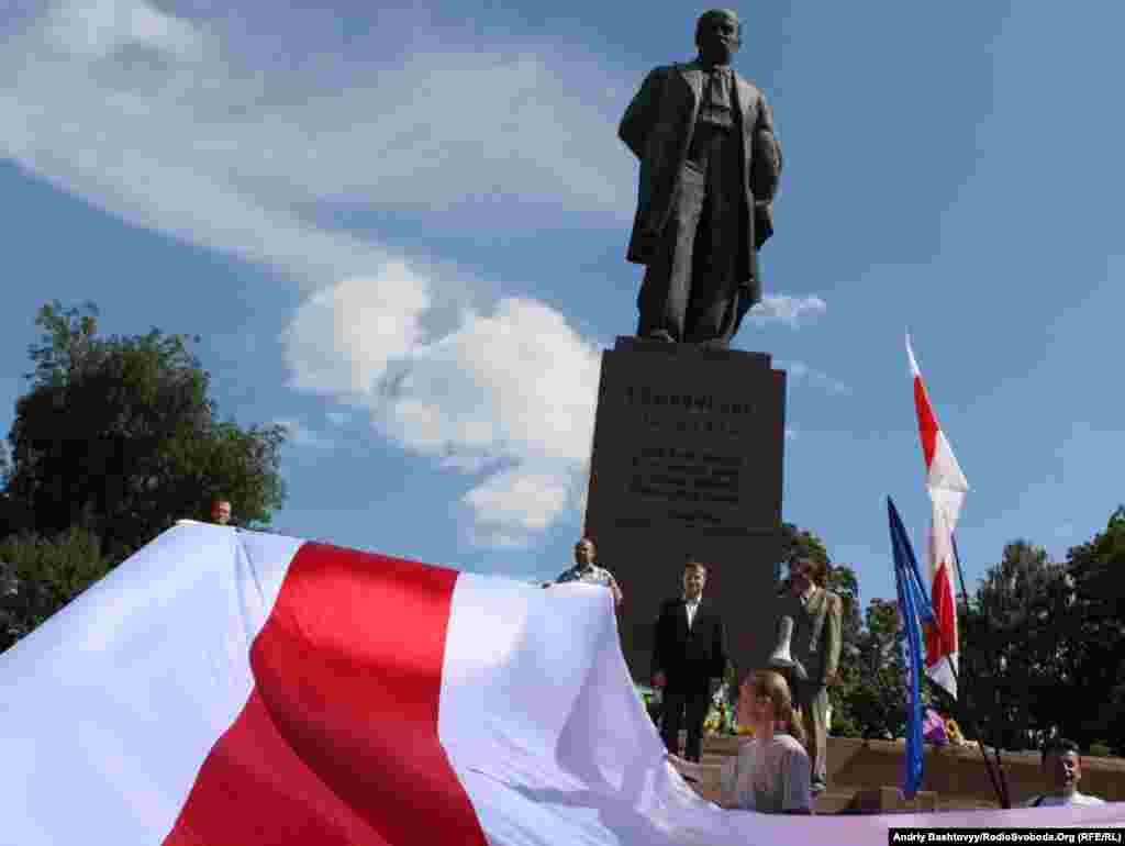 У Києві біля пам'ятника Тарасові Шевченку білоруська громада відзначила 20-річчя проголошення незалежності Білорусі.