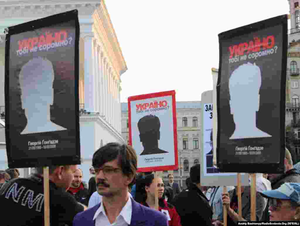 Близько півтисячі громадських активістів зібрались на майдані Незалежності у п’ятницю, щоб вшанувати пам'ять Георгія Гонгадзе та інших журналістів, які загинули під час виконання службових обов'язків. Учасники акції вимагали покарати винних.