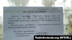 Як повідомили «Радіо Свобода» у Черкаському міськвиконкомі, новий графік діятиме до 1 січня 2012 року. Наступного року кількість пільгових тролейбусів, що курсуватимуть Черкасами, залежатиме від державної субвенції для перевезення пільгових категорій населення.