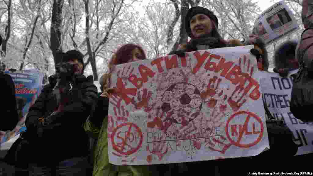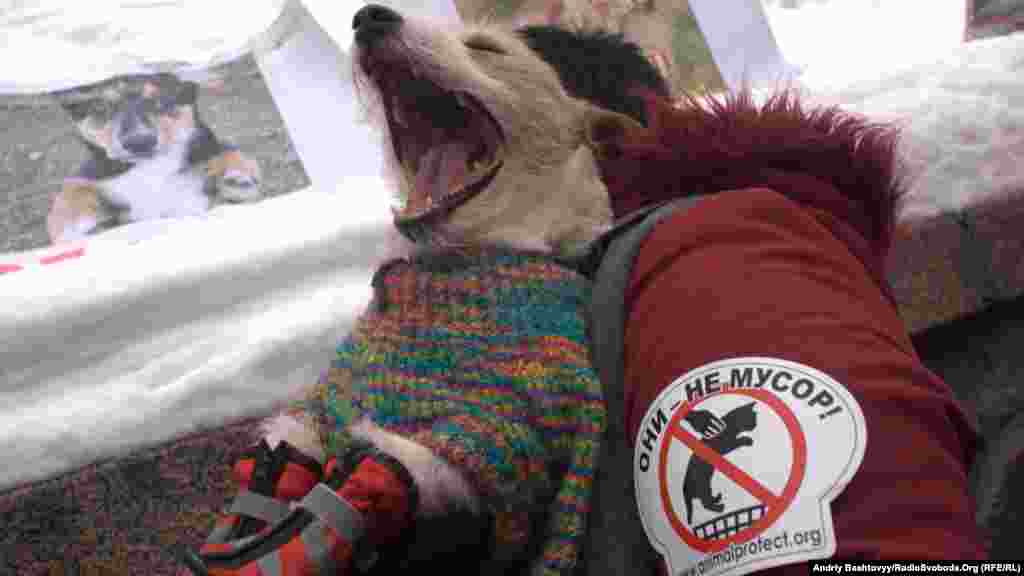 Кілька десятків осіб пікетують Кабмін, вимагаючи негайно припинити фізичне винищення тварин комунальними службами по всій країні. Учасники акції зазначають, що вони не представляють ніяку організацію і дізналися про акцію з Facebook, де було оголошено та організовано акцію на захист безпритульних тварин «Stop it»