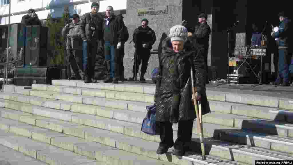 Воїни-інтернаціоналісти оточили вхід біля міськвиконкому, утворивши «живий ланцюг»