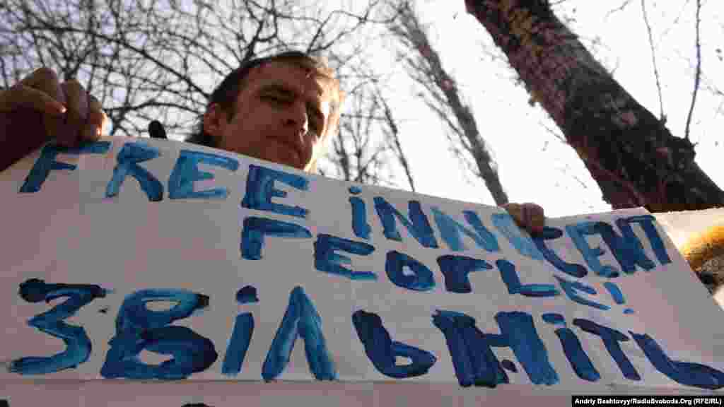 Біля Лук’янівського СІЗО у Києві зібралися громадські активісти, щоб підтримати в’язнів, які, на їхню думку, перебувають за ґратами незаконно. Акцію ініціювали рух «Сам», Комітет визволення політв’язнів, Центр інформації з прав людини, а також рух «Спільна справа».