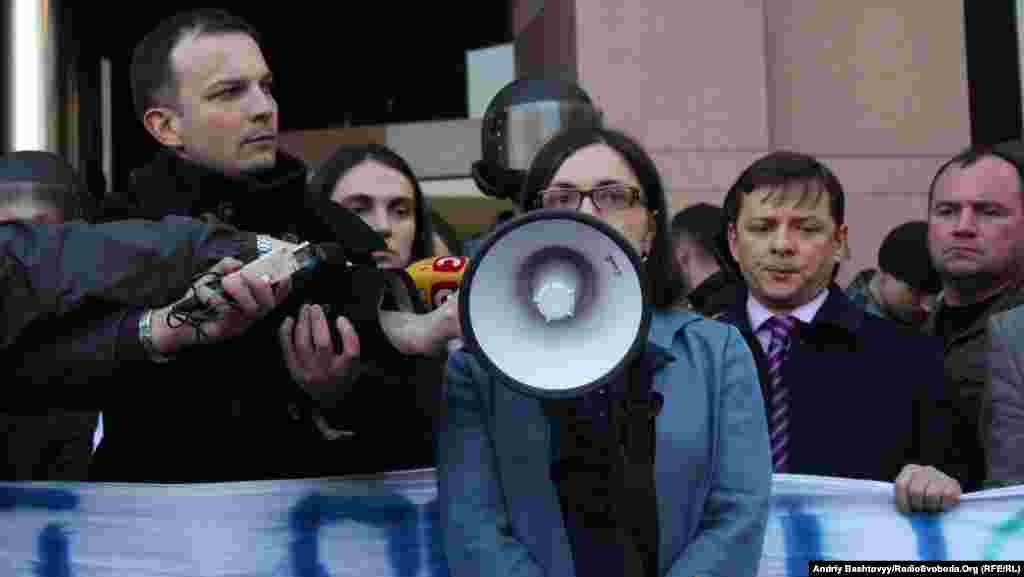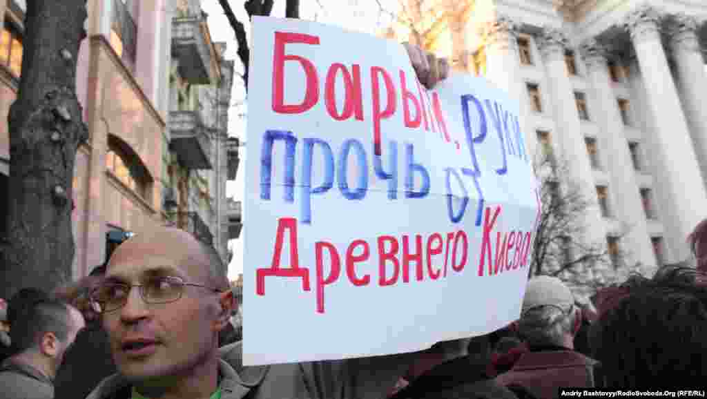 На знак протесту проти руйнування Андріївського узвозу кияни пікетували офіс компанії, що належить Рінату Ахметову і займається будівництвом на вулиці митців.