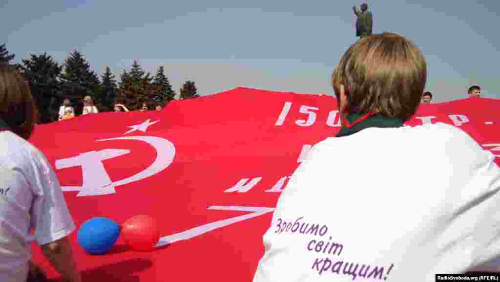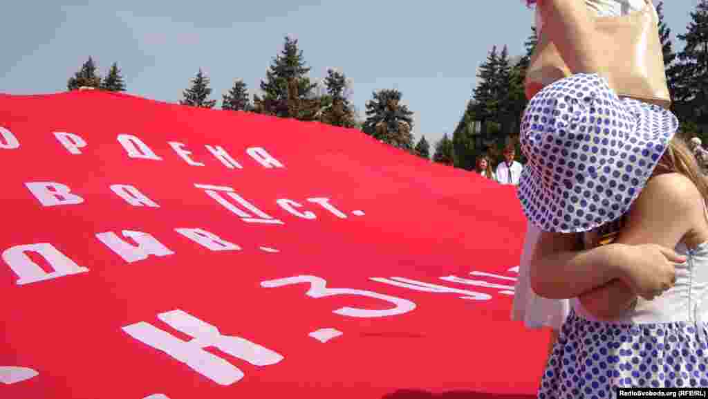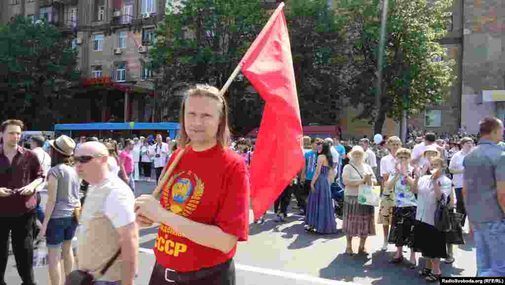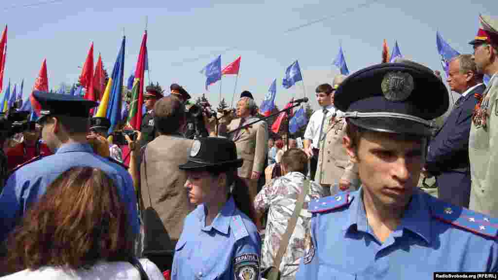 Кількатисячна демонстрація на честь Дня Перемоги відбулася у Запоріжжі. Більшість учасників параду – працівники державних установ, члени Партії регіонів і Комуністичної партії.