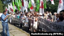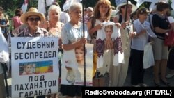 Люди скандують: «Юля – ми з тобою!», «Юлі – волю!». Учасники акції вимагають припинити кримінальне переслідування Тимошенко.