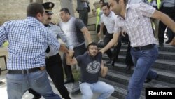 Прага – Подія, цілком протилежна святковому передчуттю фіналу конкурсу Євробачення-2012, відбулася в понеділок у центрі Баку. Поліція брутально розігнала демонстрацію на захист права вільних зібрань громадян. На думку критиків, офіційні особи пісенного конкурсу Євробачення, які у ці дні присутні на генеральних репетиціях та півфіналах, закривають очі на процвітання в Азербайджані деспотичного режиму Ільгама Алієва.