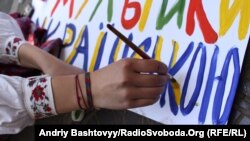 Близько 500 людей протестують біля будівлі Верховної Ради України проти розгляду й ухвалення законопроекту, розробленого депутатами Партії регіонів про основи мовної політики.