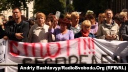 Організатори через гучномовець закликають Президента стати на захист малого бізнесу, а від Генерального прокурора вимагають порушити кримінальну справу щодо ситуації навколо ринку.