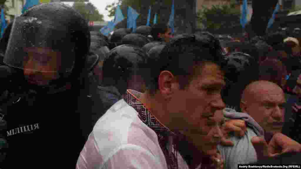 «Беркут» застосував сльозогінний газ проти учасників мітингу під Верховною Радою проти законопроекту про засади державної мовної політики. Це сталося після спроби мітингувальників прорвати кордон. Через хмару газу супротивники законопроекту відступили від кордону на кілька метрів.