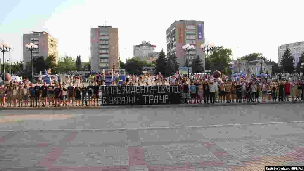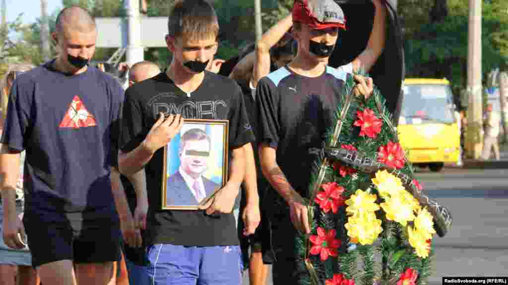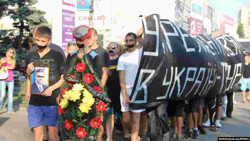 Близько півсотні черкасців у понеділок взяли участь у жалобній пішій ході на честь дня народження Президента Віктора Януковича. Молоді активісти заліпили роти чорними смужками, а на великому плакаті, який несли в руках, написали «У Президента – свято, в Україні – траур». Очолювали колону двоє хлопців із портретом Президента із заклеєними очима та із штучним вінком, «прикрашеним» чорною стрічкою «З днем народження».Насамкінець черкаські патріоти поклали «подарунок» біля дверей Черкаської ОДА, а навпроти вікон чиновників провели хвилину мовчання.
