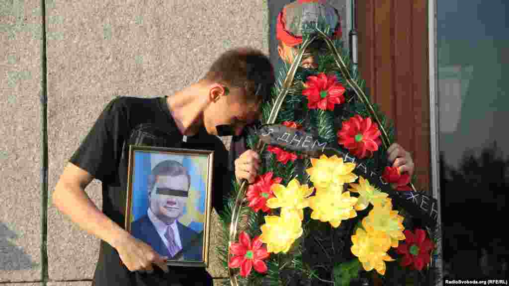 Черкаські активісти подарували Януковичу на день народження жалобний вінок