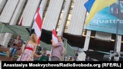 Білоруські активісти розгорнули на сходах Українського дому традиційний, але неофіційний біло-червоно-білий прапор. Близько 10 осіб прийшли із гаслами «Слава Україні» і «Живе Білорусь», демонструючи підтримку протестувальникам на Європейській площі.