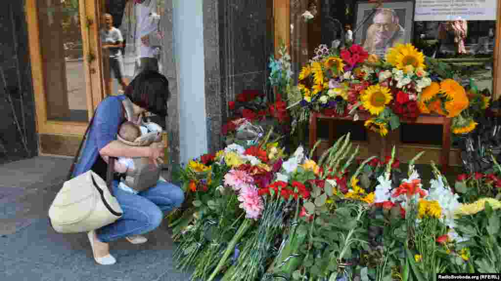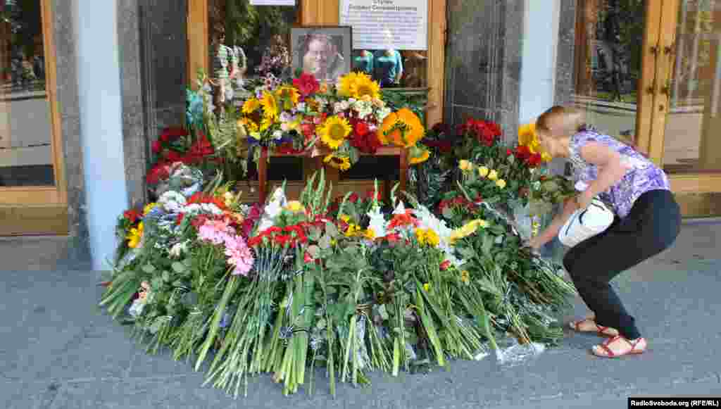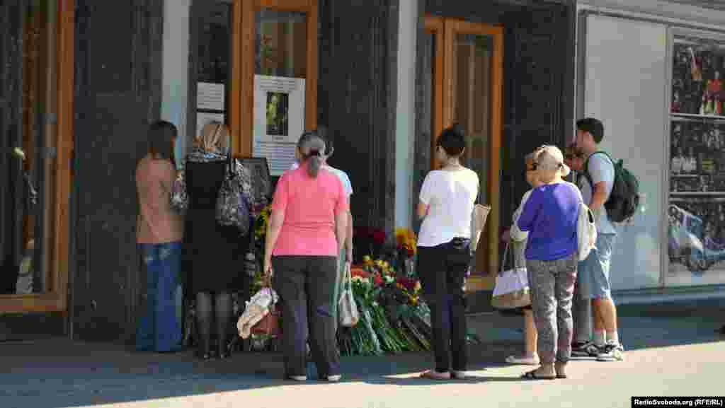 Біля Національного академічного драматичного театру імені Івана Франка жителі Києва запалюють свічки та покладають квіти, щоб вшанувати пам'ять Богдана Ступки.