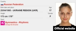 Про російську гімнастку Кароліну Севастьянову можна дізнатися, що вона народилася в «регіоні Україна».