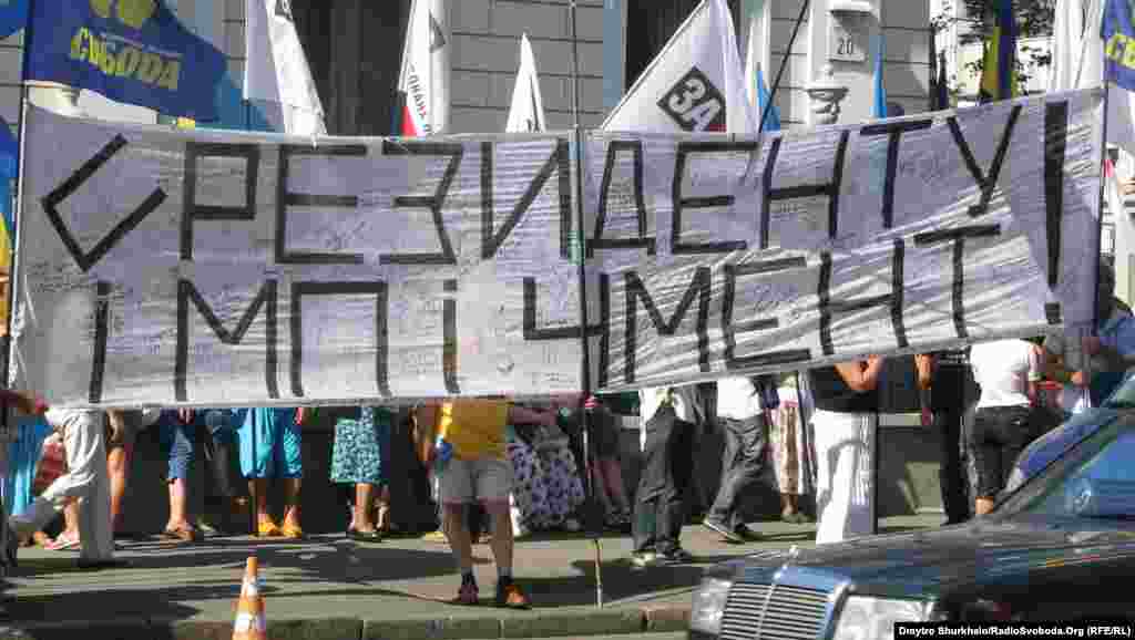 Захисники української мови зібрались під Верховною Радою, щоб перешкодити депутатам ухвалити мовний закон.