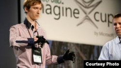 Донецьк – Донецькі винахідники, які цього літа вибороли перше місце на конкурсі Imagine Cup, що проходив у Сіднеї в Австралії, продовжують працювати над власним проектом. Йдеться про винахід Enable Talk –рукавицю, здатну розпізнавати та озвучувати жести мови глухонімих за допомогою смартфону. Компанія Microsoft зацікавилася концептом, і хлопці вже подали туди заявку на отримання гранту.