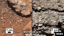 Розмір гравію у конгломератах обох відкладень – від піщинки до м’яча для гольфа. Деякі камінці вуглуваті, однак більшість із них має округлу форму, і саме це, на думку вчених, доводить, що на Марсі існувала вода. «У природі існує не так багато умов, які можуть вплинути на округлу форму камінців», – наголошує Джозеф Міхальськи з Тусонського планетарного інституту.