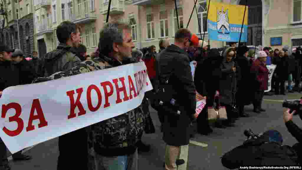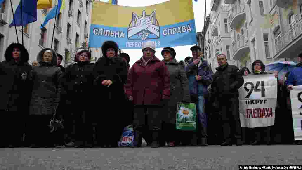 Біля Адміністрації Президента протестують кандидати та їхні прихильники з «проблемних» виборчих округів. Зокрема, інтереси Аркадія Корнацького до Києва приїхали захищати його прихильники з Первомайська.