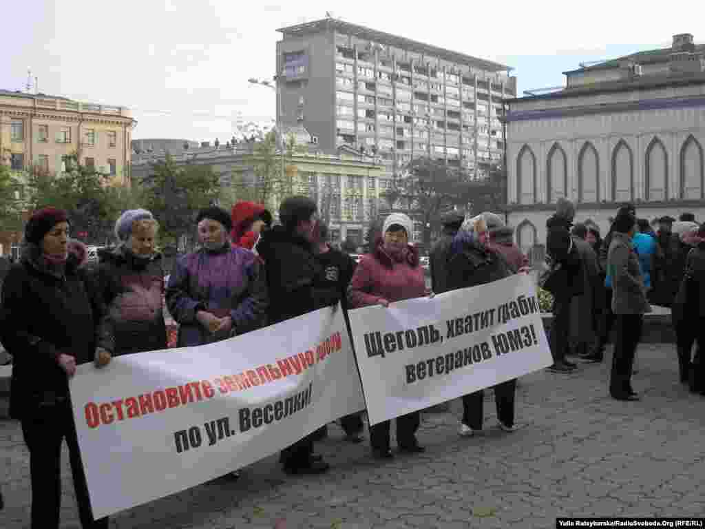 У Дніпропетровську відбулась акція протесту мешканців міста, які вважають себе потерпілими від земельної афери. За словами протестувальників, майже 500 земельних ділянок на околиці міста загальною площею понад 70 гектарів, видані працівникам Південного машинобудівного заводу ще 20 років тому під постійне користування, наразі передані у розпорядження міської ради. У міськраді протестувальникам повідомили, що вони мають збирати належні документи, щоб довести своє право на землю, а також звертатись до суду.