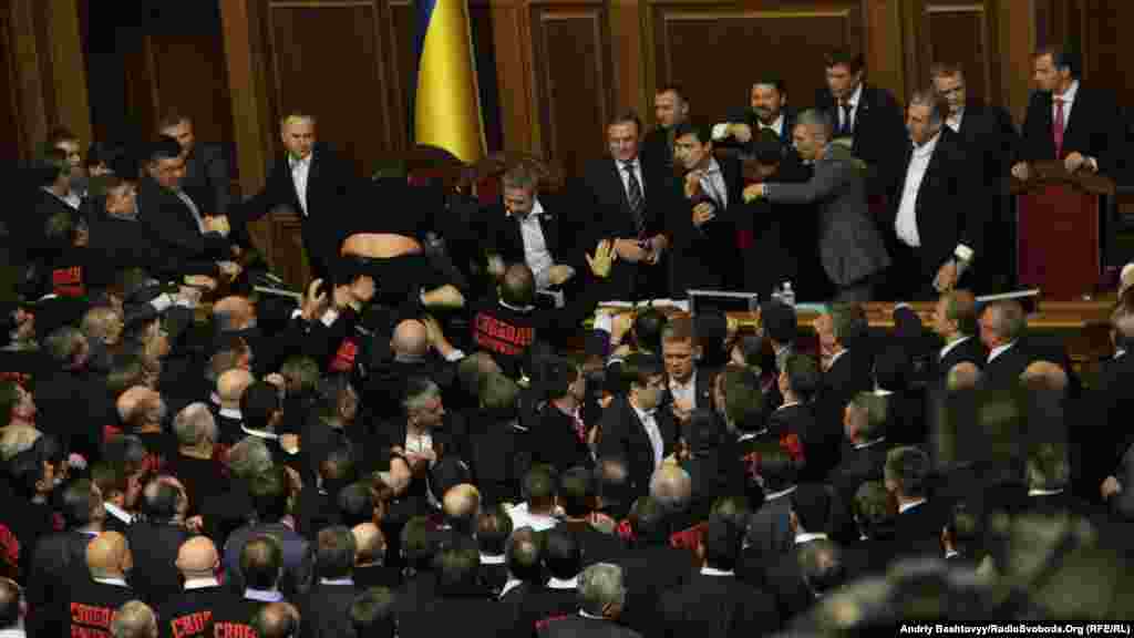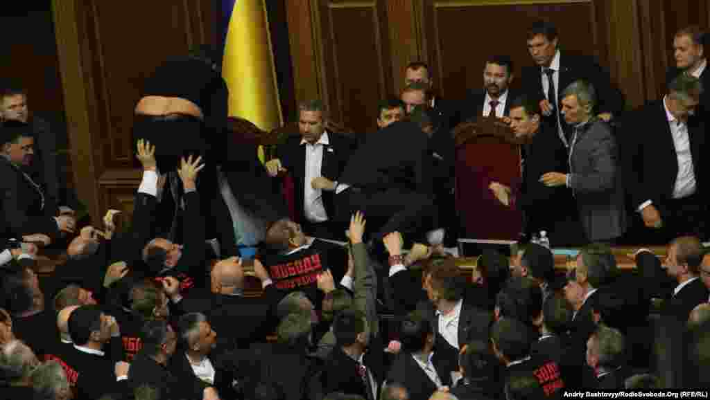 Депутати встигли побитись, блокувати трибуну, подарувати Литвину квіти і поспілкуватись...